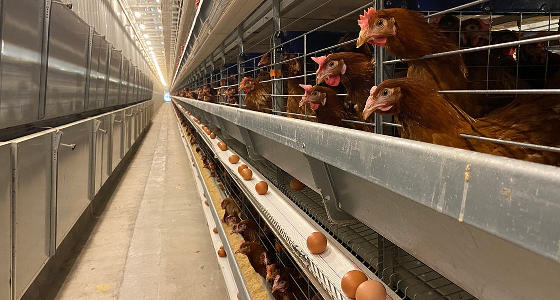 The egg collection system features stable operation, low egg breaking rate, convenient operation and high automation;